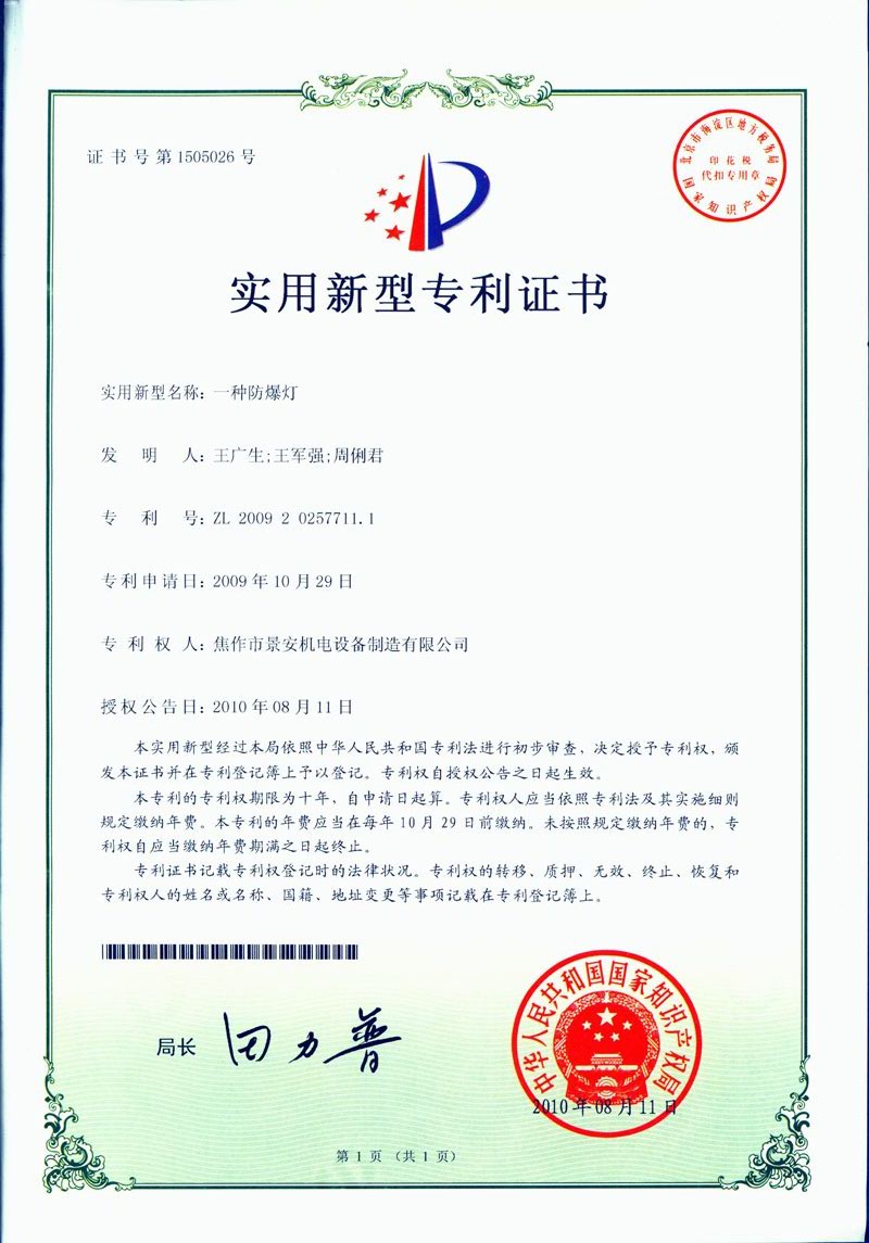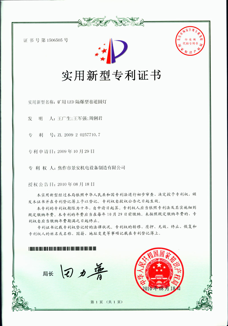 焦作景安公司始終堅持“以科技為先導,以市場為導向”的發展戰略,不斷進行新產品的研制和開發,在國家“六五”到“九五”期間,承擔和參與了國家多項科技攻關項目。并被中國電器工業協會評定為“質量可信產品”。特別是在礦用防爆燈領域,礦用隔爆型半導體(LED)照明燈具,2008年列入國家火炬計劃,獲2009年河南省工業和信息化廳的科技成果二等獎,并擁有多項國家專利。 |
